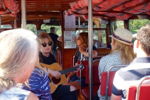 Local artist Stina Stjern performing on a boat trip to the festival area.